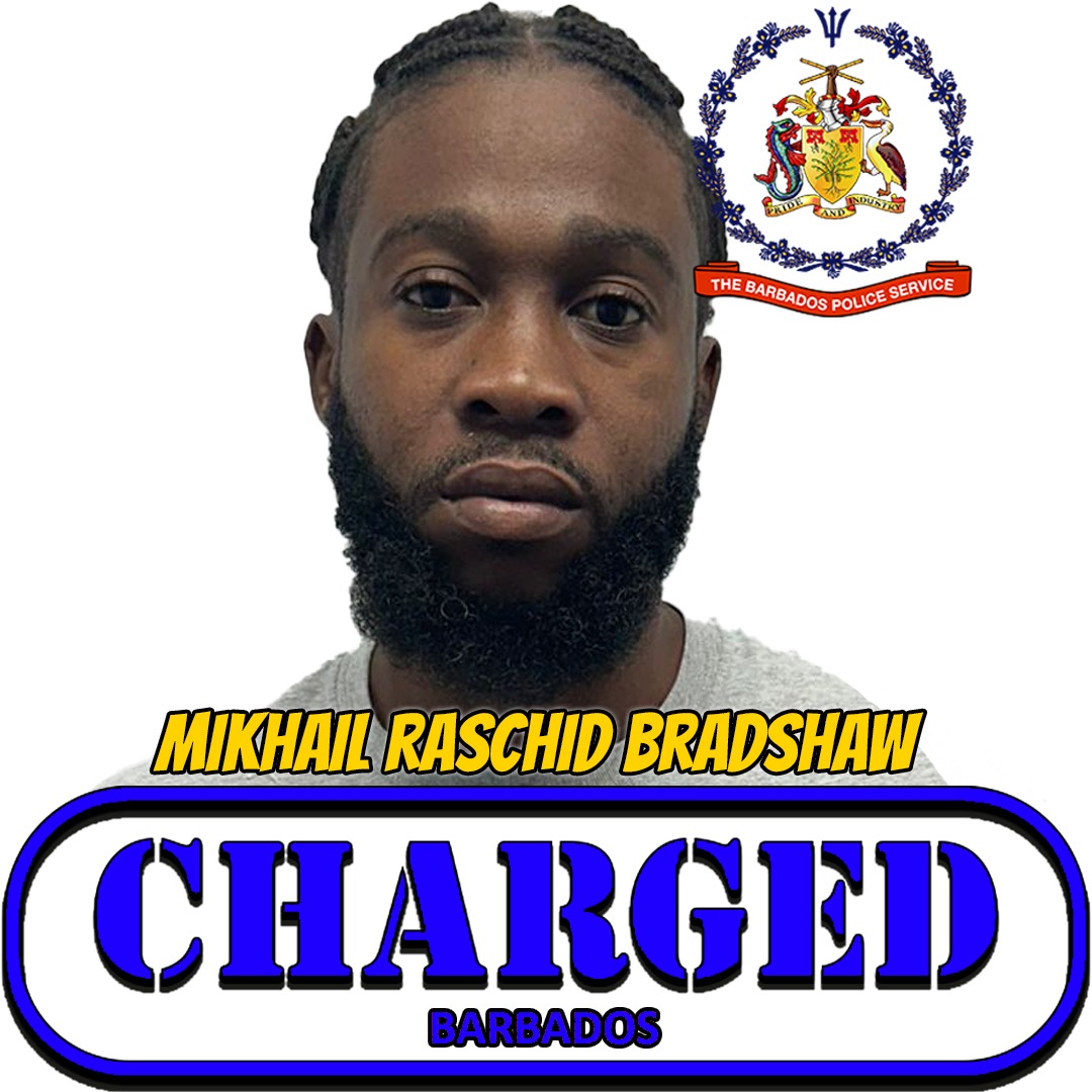 The Barbados Police Service (TBPS) Major Crime Unit (MCU), has arrested and formally charged Mikhail Raschid Bradshaw, 29 years of Workmans, St George, for the following offences:
