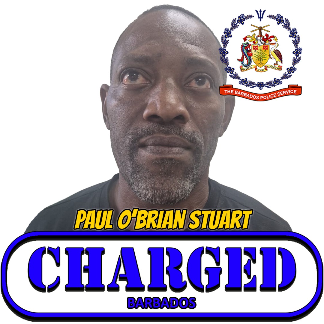 The Barbados Police Service (TBPS) Major Crime Unit (MCU), has arrested and formally charged Paul O’Brian Stuart, 52 years of #144 Pickwick Gap, St. Michael for the following offence, which occurred along Chapman Street, Bridgetown, St. Michael: